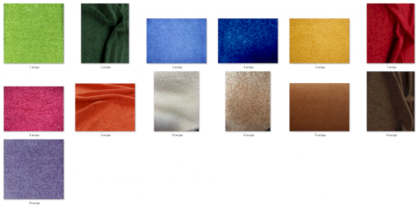| Цвет | БЕЖЕВЫЙ / БЕЛЫЙ / ГОЛУБОЙ / ЖЕЛТЫЙ / ЗЕЛЕНЫЙ / КОРИЧНЕВЫЙ / КРАСНЫЙ / МУЛЬТИКОЛОР / ОРАНЖЕВЫЙ / РОЗОВЫЙ / САЛАТОВЫЙ / СЕРЫЙ / СИНИЙ / СИРЕНЕВЫЙ |