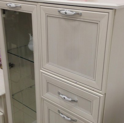 Гостиная «Венеция» выполнена в лучших классических традициях! Каркас 16 мм и фасады 16 мм выполнены в декоре «Бодега светлая», а металлические ручки в цвете «Хром глянцевый» с белой вставкой. В ассортименте модулей имеется - буфет, шкаф-пенал, шкаф для посуды 2-х дверный, шкаф универсальный, полки, тумбы и другие составляющие.