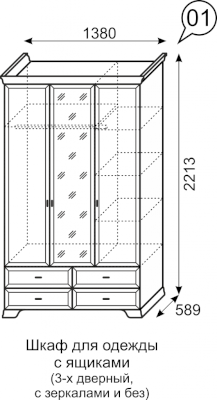 Шкаф для одежды 3-х дверный с ящиками (без зеркала) №1