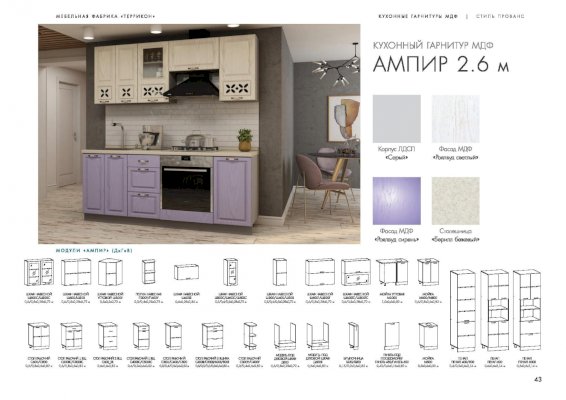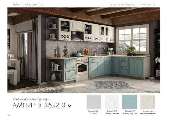 Кухня Ампир изговаливается также в цветах серый/роялвуд сирень; серый/роялвуд бирюза; серый/роялвуд голубой. Модули в этих цветовых решениях вы сможете найти в нашем интернет-магазине.