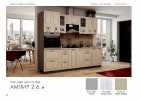Хотите готовить и проводить время на кухне с удовольствием? Укомплектуйте помещение красивой и удобной мебелью — закажите гарнитур «Ампир»! Комплект эстетичен и функционален. В него входят все необходимые для создания идеальных условий элементы. Холодные оттенки поддерживают праздничное, романтическое настроение. Немного гламура в обстановку вносят прорезные орнаменты на дверцах подвесных шкафчиков.