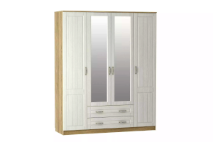 Вместительный шкаф Оливия НМ 011.84 Х поможет организовать место хранения вещей всей семьи. Шкаф имеет две секции со штангами, что позволяет рассортировать вещи по необходимым характеристикам: взрослая и детская; зимняя и летняя и т.д. Отдел с полками оптимален для размещения повседневной одежды, а два выдвижных ящика помогут раздельно хранить белье и аксессуары. Две центральных дверцы декорированы зеркалами, которые визуально увеличивают пространство комнаты и делают процесс сборов максимально удобным.