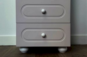 Корпус выполнен из ЛДСП толщиной 16 мм, фасад изготовлен из МДФ в плёнке ПВХ и декорирован фрезеровкой, подчёркивающей стиль серии Милана. Оригинальные круглые ручки и опоры дополняют дизайн, придавая шкафу аккуратный и современный внешний вид.