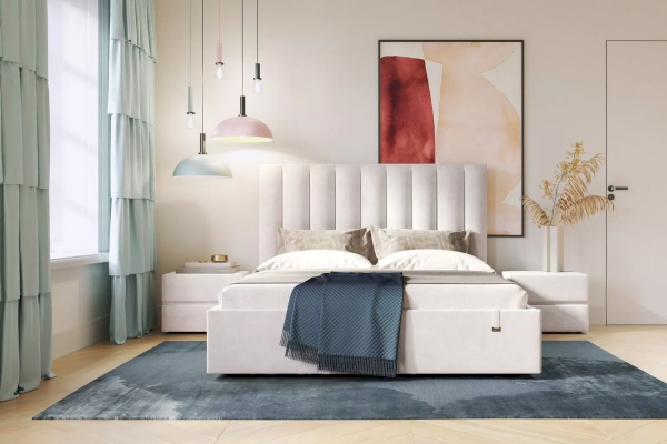 Кровать Ingrid подойдет для современных интерьеров спален, впишется в ретростиль и скандинавский минимализм. Обивка будет отлично сочетаться с любыми цветовыми оттенками отделки и мебели. Кровати выполнены как в нейтральных, так и в ярких тканях велюр, что позволяет подобрать подходящий вариант почти под любой интерьер. Изголовье имеет прямоугольную форму, повторяя очертания кровати. Дизайн модели отличается высоким изголовьем с вертикальными строчками и углублениями.