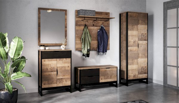 Функциональный вместительный комод станет отличным решением для оформления прихожей, спальни или гостиной. Особенность дизайна – это сочетание реалистичных по цвету и тактильности трендовых декоров, которые соответствуют последним городским тенденциям. «Дуб Гранж» привлекает имитацией вручную обработанного дерева и выразительной зернистой текстурой, характерной формой досок. Стильный серый цвет «Железного камня» с металлическими разводами и новая текстура состаренной штукатурки в сочетании с гладкостью металла вносят индустриальныи? колорит. Комод оснащен двумя ящиками на телескопических направляющих и закрытыми полками для хранения вещей и аксессуаров. Отсутствие лицевой фурнитуры подчеркивает минимализм и геометрию модуля. Идеально компонуется со всеми модулями системы Стокгольм.