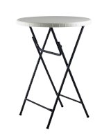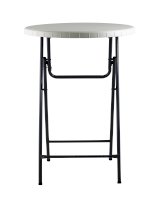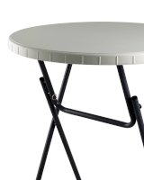 Диаметр стола 81 сантиметр обеспечивает комфортное размещение 3-4 человек, и для масштабного события может потребоваться несколько изделий. Однако благодаря складной конструкции модель займет минимум места при перевозке, благодаря чему столы можно перевезти небольшой партией и на легковом транспорте. Для каркаса используется стальная труба особой прочности, а столешница выполнена из 100% не переработанного полиэтилена HDPE (полиэтилен высокой плотности). Считается одним из более безопасных видов пластика. HDPE пластик выдерживает высокие нагрузки, не трескается при ударной нагрузке, эластичен в диапазоне температур от –70 до +100 °С.
