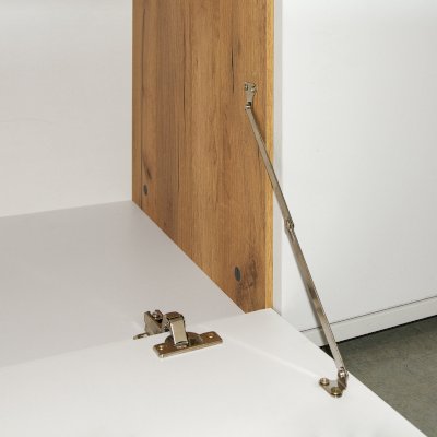 Фурнитура: Распашные двери на четырёхшарнирных петлях; выдвижные ящики - фолдинги на шариковых направляющих.