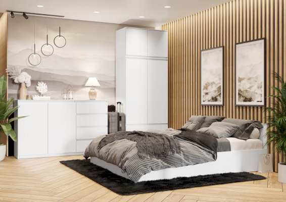 Фасады, выполненные в цвете Белый Шагрень, отсутствие лицевой фурнитуры и качественные шариковые направляющие полного выдвижения - всё это делает модульную систему "Мадрид" современной, стильное и по-домашнему уютной!