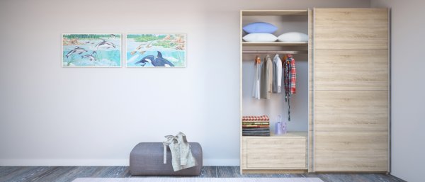 Серия «Прайм» отличается доступностью и функциональностью Навесные двери и лаконичная отделка фасадов создают прогрессивный дизайн. Подойдет тем, кто любит компактную и изящную мебель. Алюминиевые ручки и верхний ходовой профиль обеспечивают легкость и прочность конструкции. Многолетняя безупречная работа благодаря высококачественной немецкой фурнитуре Hettich. Прочная ПВХ-кромка толщиной до 1 мм защищает края от сколов и повреждений. Плавный ход дверей обеспечивает надежная система Hettich Top Line M. Дополнительно можно установить доводчики. Снаружи нет заглушек и винтов благодаря стяжечной системе крепления полок на флипперах, а корпус усилен эксцентриковыми стяжками. Навесные двери скрывают раздвижной механизм от глаз. Они надежно удерживаются в направляющих и не соскакивают. Каждая дверь поделена на 4 секции Секции расставляются в произвольном порядке, создавая новый дизайн фасада.