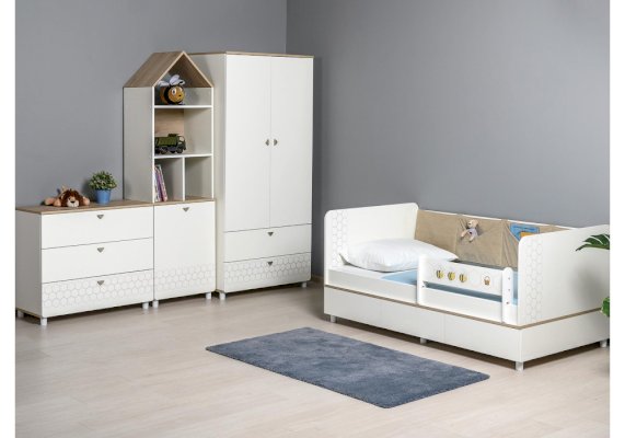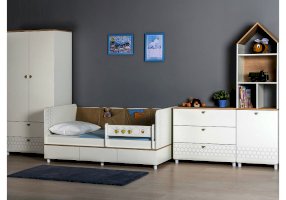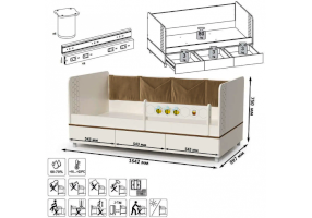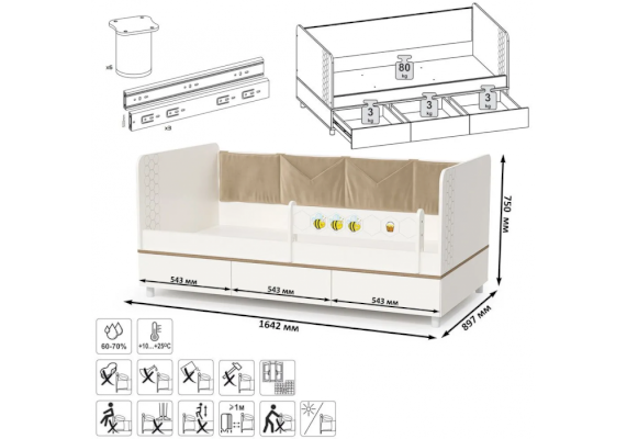 Односпальная кровать оснащена съёмным мягким элементом с карманами — можно легко снять для стирки. Съёмный бортик на кроватке. Оригинальная фотопечать. В основании кроватки размещены - три выкатных ящика.
