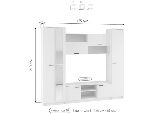 | Длина ниши под телевизор, см | 140 |