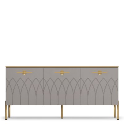 • Купить современную тумбу под ТВ - это отличное решение. Ведь ее эффектный внешний вид способен преобразить интерьер вашей гостиной. Фигурная фрезеровка фасадов, яркие металлические ручки, золотая кромка – все это создает яркий образ стильной тумбы для гостиной.