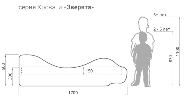 Размер кровати (ДхШхВ): 1700х730х500 мм