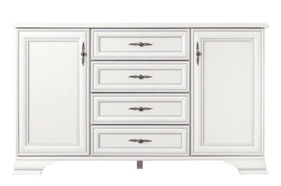 2 распашные двери и 4 выдвижных ящика на металлических роликовых направляющих, за каждой распашной дверью 2 ниши.
