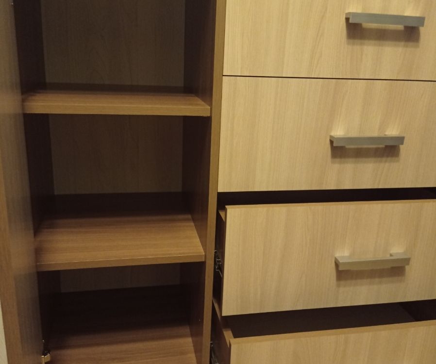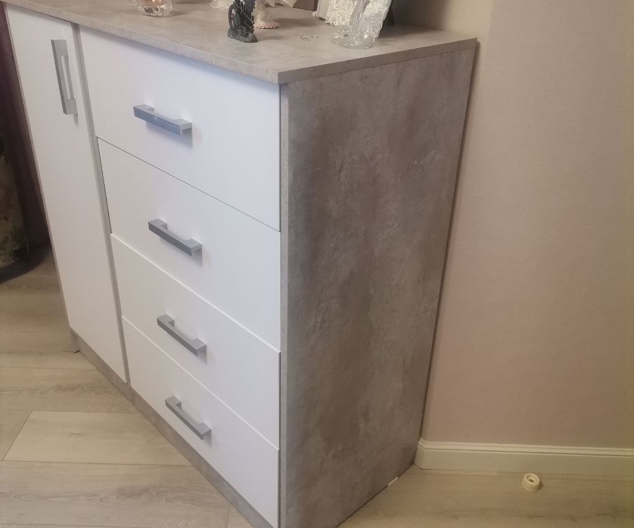 Выбирали комод по фото. Даже не ожидали, что комод окажется настолько качественным и красивым! Все детали без дефектов и сколов, что очень порадовало! Достаточно крепкая фурнитура, крепкие салазки. Приятно, что продавец очень внимательный и положил даже наклейки для того, чтобы закрыть место крепления! Однозначно рекомендую к покупке! Теперь хотим угловой шкаф и тумбу из этой же серии мебели, чтобы собрать комплект.