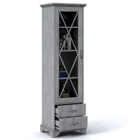 Пенал-витрина добавит уюта в интерьер гостиной в стилях неоклассика или прованс. Белые рамочные фасады с фактурой и рисунком натурального дерева, декоративные крестообразные накладки, фигурные ножки и карниз все это придает комнате элегантный и светлый вид. За прозрачным фасадом можно расположить предметы декора, красивый сервиз или книги. Выдвижные ящики на телескопических направляющих предназначены для хранения различных вещей. Мебель выполнена из экологичных материалов.