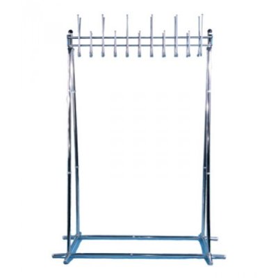 Групповая вешалка на 22 крючка. Вешалка выполнена из оцинкованной стали с полимерным покрытием. Крючки вешалки выполнены из трубы диаметром 10 мм. Вешалка поставляется в разобранном виде, в картонной таре. Эта модель вешалки может использоваться как фрагмент для обустройства гардеробных комнат.