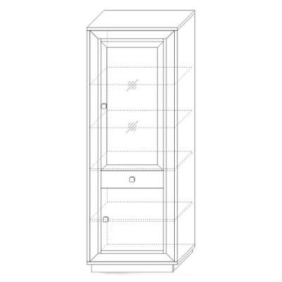 Преимущества данного модуля из коллекции «Прато» в том, что модель удивительно объединила в себе элементы распашного шкафа и витрины. Такая конструкция позволяет одновременно хранить вещи закрыто и, благодаря наличию стеклодвери, использовать шкаф как бар или сервант для хранения красивой посуды или фужеров.