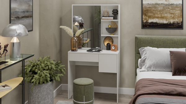 Компактный и достаточно функциональный туалетный стол «Вайт» поможет создать укромный уголок для нанесения макияжа и будет уместен в любой части квартиры.