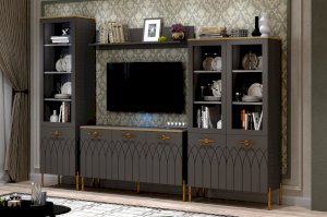 Большой комод на ножках с тремя отделениями для хранения – практичное решение для современной гостиной. Каждое отделение разделено полкой ЛДСП для хранения книг, журналов, предметов быта или домашнего текстиля. Благодаря ширине 1370 мм модуль может быть использован как комод под телевизор с большой диагональю.