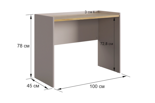 Корпус стола выполнен в цвете кашемир, что придает ему современный и спокойный вид, легко сочетающийся с любым интерьером. Столешница изготовлена из высококачественного материала цвета дуб крафт золотой с толщиной 22 мм, что обеспечивает прочность и устойчивость к повреждениям. Этот цвет добавляет столу теплоту и роскошь, создавая приятное ощущение при работе или учебе.