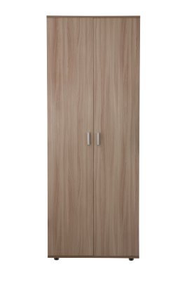 Шкаф двухдверный отличается простотой и лаконичностью оформления, внутри антресольная полка и штанга под одежду.